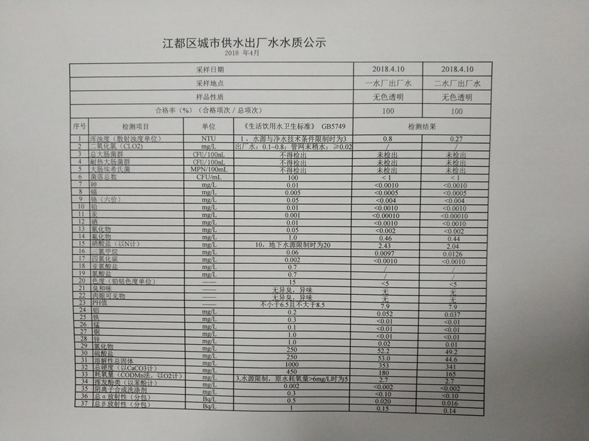 水質(zhì)公示