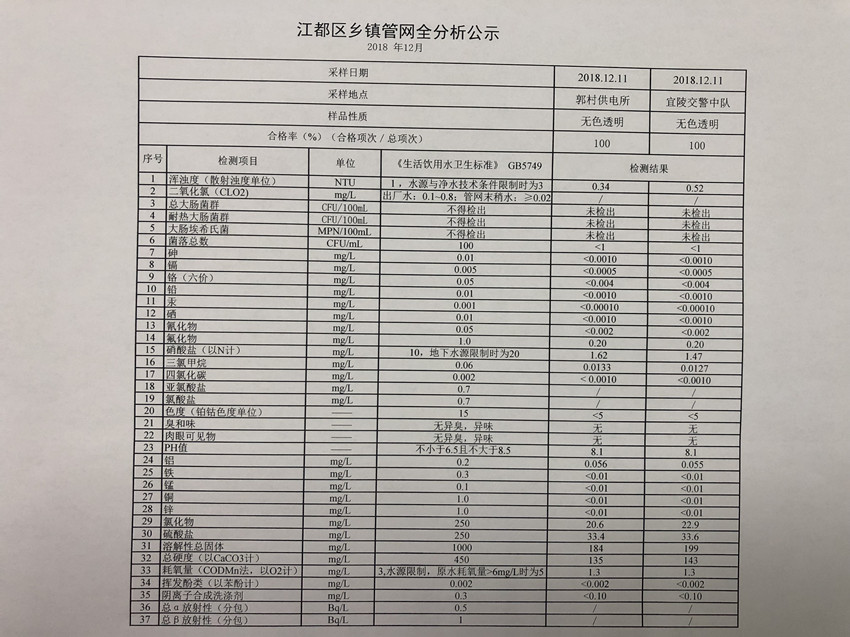 2018年12月江都區(qū)鄉(xiāng)鎮(zhèn)管網全分析公示