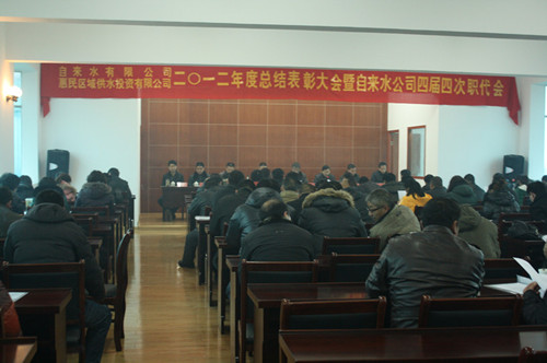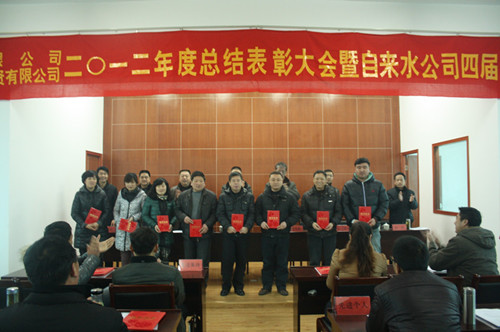 2月5日,我公司召開(kāi)2012年度總結(jié)表彰大會(huì)暨四屆四次職代會(huì),會(huì)上,劉書(shū)政總經(jīng)理作了題為《開(kāi)拓創(chuàng)新 務(wù)實(shí)奮進(jìn) 全面譜寫(xiě)城鄉(xiāng)一體化供水新篇章》的工作報(bào)告,對(duì)2012年供水工作做了認(rèn)真總結(jié),并對(duì)2013年工作進(jìn)行了細(xì)致謀劃,大會(huì)還對(duì)2012年度先進(jìn)集體和先進(jìn)個(gè)人進(jìn)行了表彰。