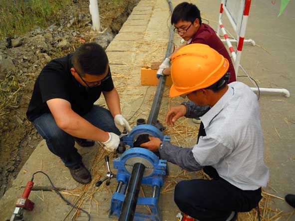 為保障區(qū)域供水有效運行,公司加大支管網和鄉(xiāng)鎮(zhèn)用戶水表出戶規(guī)范化改造力度,將“放心水”送到農戶家中。圖為工作人員在實施支管網改造。
