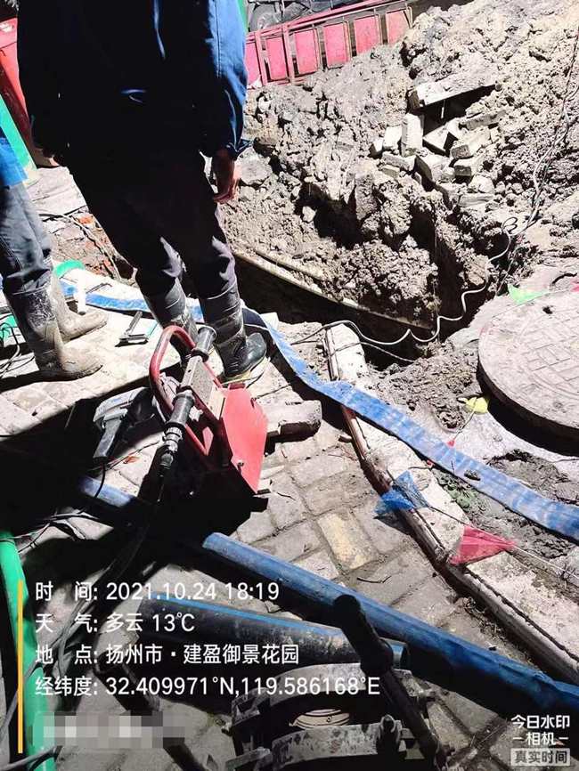 為了盡快恢復(fù)正常供水,搶修人員輪流上陣,搶時間開挖,身上的衣服早已濕透。堅硬的水泥路面,加上小區(qū)門口人來車往,不利于機(jī)械作業(yè),只能采用切割機(jī)切割,人工開挖。狹小的溝槽里,只能容下2名人員開挖,上面工作人員做好服務(wù),溝槽里輪流工作,不能有絲毫懈怠,連續(xù)幾小時開挖后,主管道顯現(xiàn),具體漏水位置確定。由于大量的泥土被浸透,此時的溝槽猶如一個大泥池,搶修人員在泥濘的基坑里半蹲著進(jìn)行割管、連接、上螺絲……