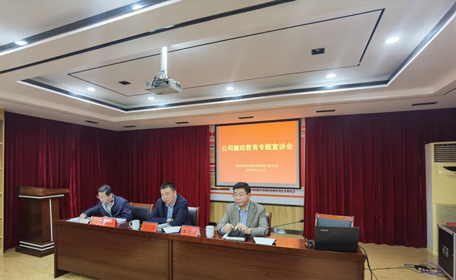 為了不斷增強(qiáng)黨性觀念和廉潔從政從業(yè)意識(shí),進(jìn)一步抓好龍川水務(wù)公司各部門、子公司的廉政建設(shè)工作,切實(shí)增強(qiáng)各級(jí)黨員干部廉政意識(shí),11月4日下午,公司在東四樓黨員活動(dòng)室舉行廉政教育宣講會(huì),龍川控股副總經(jīng)理兼水務(wù)公司執(zhí)行董事張勇同志,公司領(lǐng)導(dǎo)班子成員王智勇、劉書政、石元忠等出席會(huì)議,公司黨總支和第一、二支部的全體委員、公司所屬各部門、子公司三級(jí)以上管理人員共70余人參加會(huì)議。