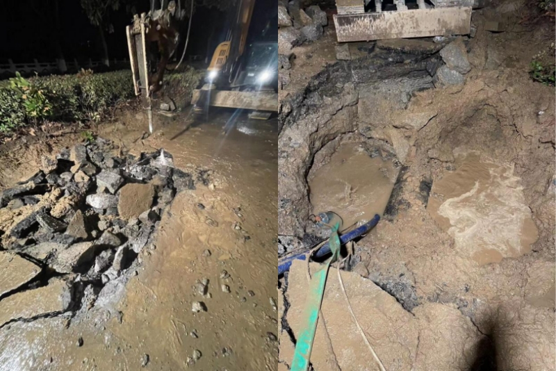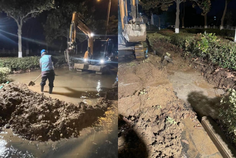 2023年1月25日,大年初四下午4點,當大家還沉浸在新年的節(jié)日氛圍,在走親訪友時,在做待客的晚飯準備時,龍泉公司接到群眾反映,江都橋北道路由于氣溫驟降的原因導致DN600主管發(fā)生爆裂,嚴重影響到附近居民供水安全以及道路安全,接到反映后,值守經理韓春暉同志、項目部經理夏陽華同志果斷部署,搶修班組迅速響應、組隊,趕往現場。