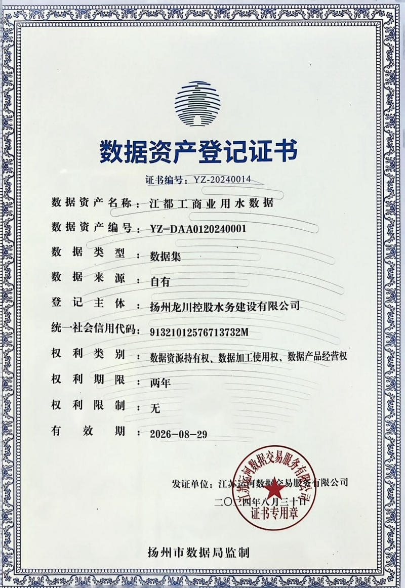 展望未來,揚州龍川水務將繼續秉持“以水為本、服務社會”的宗旨,不斷提升數據管理水平和服務質量,為江都區經濟與社會發展提供更加安全、優質、高效的服務。相信在數據資產登記證書的助力下,龍川水務將在智慧水務的新征程上創造更加輝煌的業績。